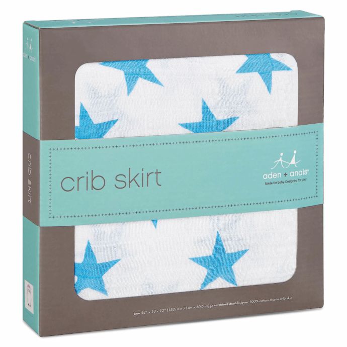 Dress up your nursery with the bright and modern look of the Fluro Crib Skirt from aden + anais. In a bold and bright star pattern in aqua blue on white, it's made from 2 layers of 100% cotton muslin, and will fit standard cribs and toddler beds.
