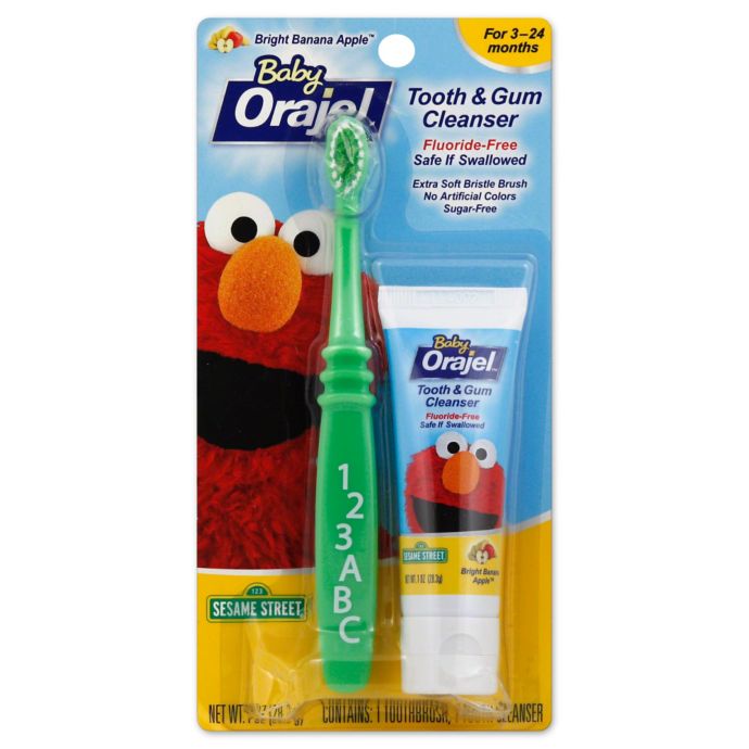 For babies 4 months & older. For cleaner teeth & gums. Fluoride-free. Safe to swallow. Pediatricians and pediatric dentists highly recommend that parents begin cleaning baby's teeth and gums everyday at an early age. Sugars in formula, juice and other foods can build up a plaque-like film. Cleaning the teeth and gums at an early age helps develop healthy habits for a lifetime of beautiful smiles. Baby Orajel Tooth & Gum Cleanser gently cleans teeth and gums with a mild, fruity flavor so your baby will enjoy it. Best of all, it's fluoride-free so it's safe to swallow. Baby Orajel Tooth & Gum Cleanser is made in USA. Toothbrush is made in China.
