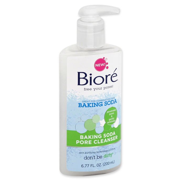 - Biore Baking Soda Pore Cleanser every day liquid cleanser deep cleans and exfoliates dry, flaky, skin