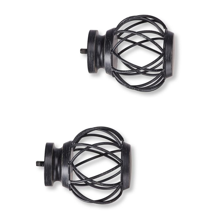 Bring charming style to your windows with the Cambria Farmhouse Wire Birdcase Finials Set. Crafted from metal and resin, this set of finials features a wire birdcage design with a weathered finish for an rustic look.