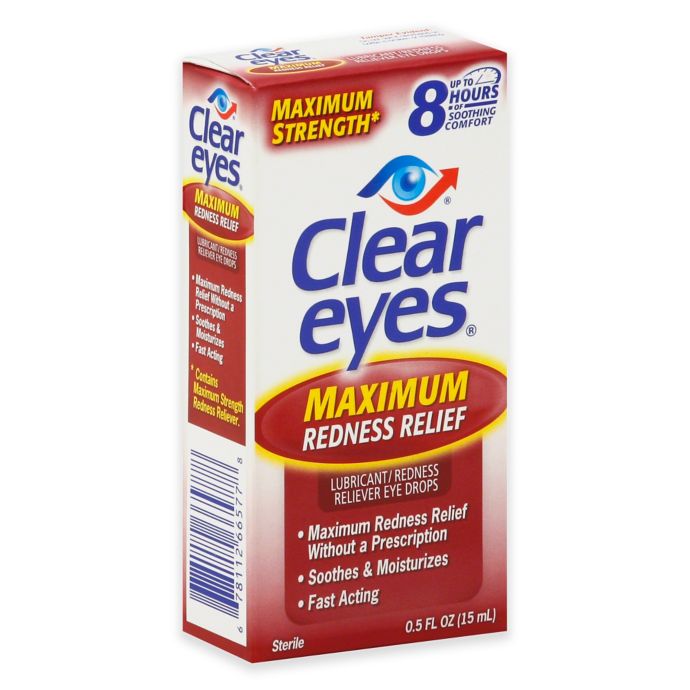 - Clear Eyes Maximum Redness Relief contains the maximum strength of redness relief