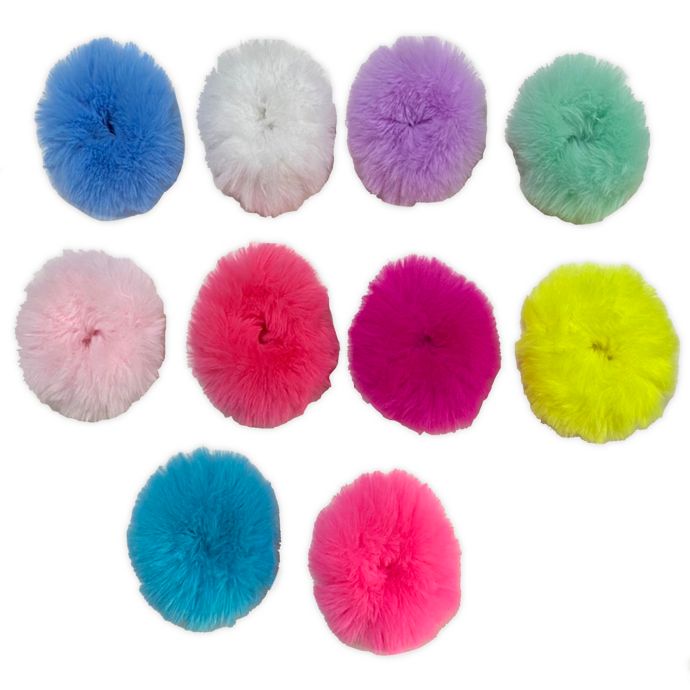Give any hairstyle a fun and colorful accent with these Faux Fur Ponytail Holders from Danbar. Included are 10 ponytail holders in assorted colors for pairing with outfits.