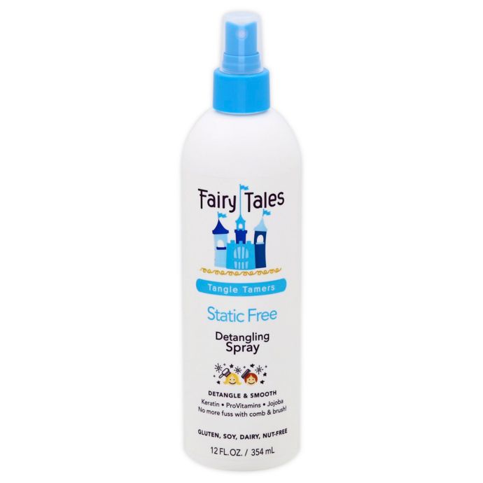 Fairy Tales Tangle Tamer Super Charge Detangling Spray offers weightless conditioning to detangle unruly knots and eliminate static naturally, with Jojoba and Aloe Vera extract plus Keratin proteins and ProVitamin B and E to prevent breakage.