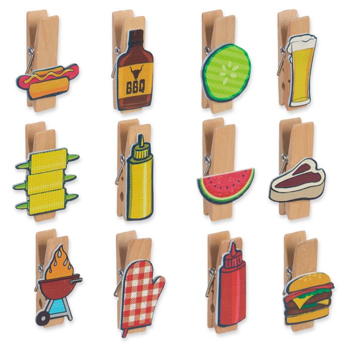 Give your home decor a personal touch by attaching photos, invitations or cards to these BBQ Icons Magnetic Photo Clips from Grasslands Road. Wood clothespin style clips have a magnetic back for use on a fridge or other metal surface.
