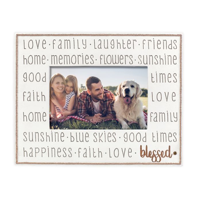 Celebrate your family and friends with the Blessed Picture Frame by Grasslands Road. This sentimental frame holds a 4 x 6 photo and features a variety of sweet words that display your love, while creating a wonderful keepsake.