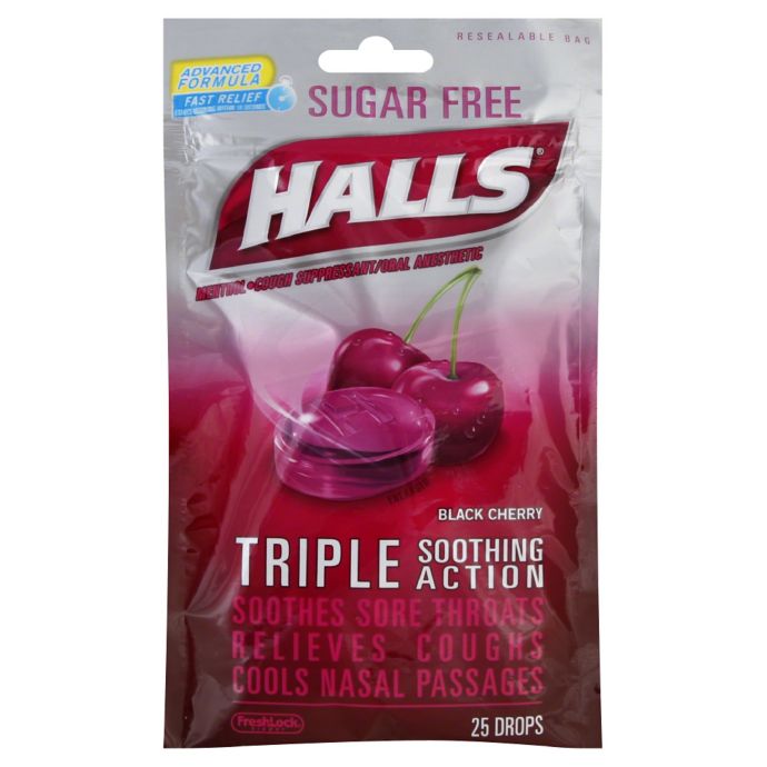 - Halls® 25-Count Sugar-Free Cough Drops in Black Cherry