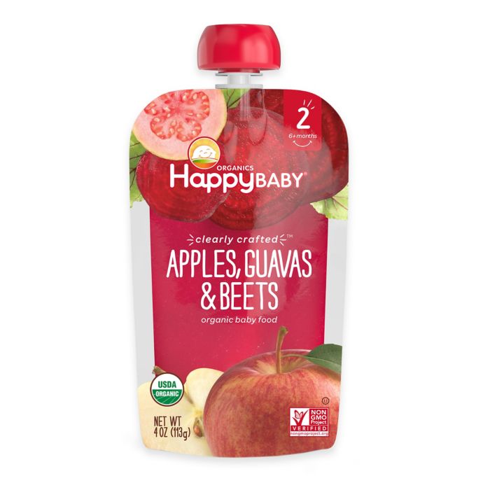 - Happy Baby's Clearly Crafted Apples, Guavas, and Beets bring an organic and delicious blend of fruits and vegetables in an easy-to-use pouch