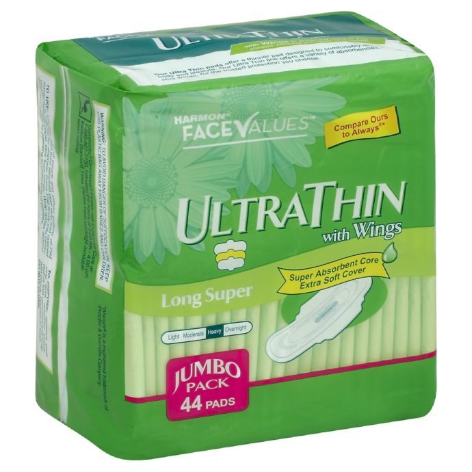 - Harmon Face Values Jumbo Pack Ultra Thin Pads with Wings shield the sides of your panties, keeping you clean and secure