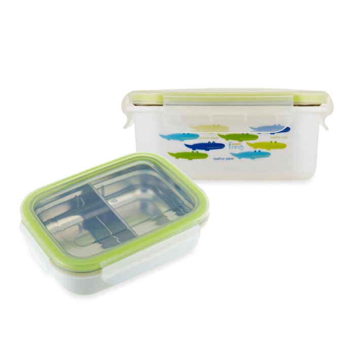 - The Keepin' Fresh stainless steel box has a BPA-free protective sleeve that reduces temperature transfers to protect little hand