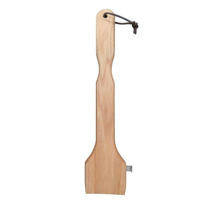 Remove the burned-on food stuck to your grill grates with the Wood Grill Scraper from Just Grillin'. This wood and stainless steel brush has a built-in tooth that fits underneath the grates to properly secure the scraper as you brush.