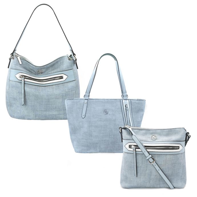 The Marina Galanti Biancheria Bag Collection has stylish and functional carriers with plenty of storage. Each features a signature lined interior, multiple zippered compartments, and handles. Coated-linen exteriors are water-resistant.