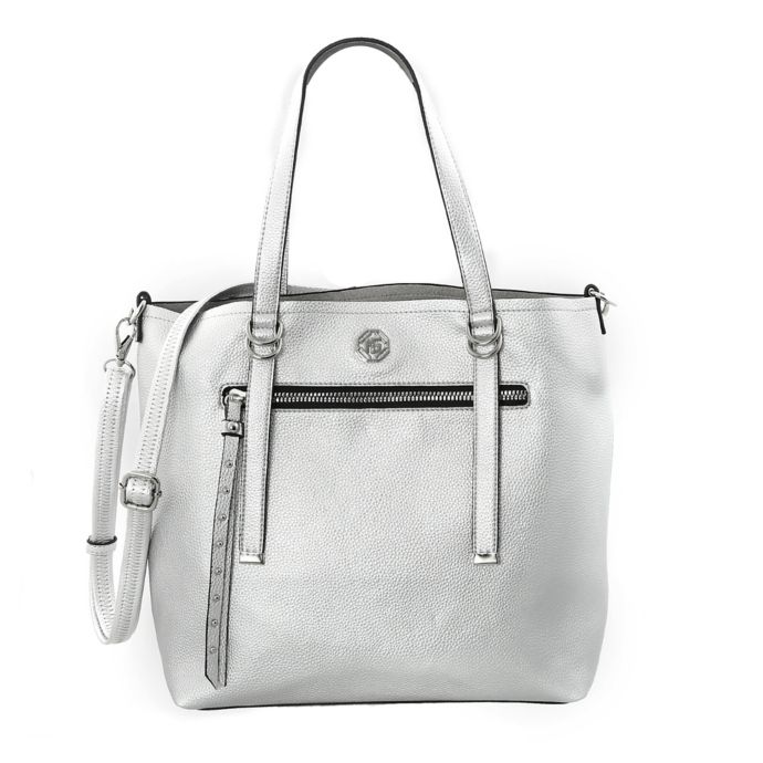 This ultra-light and soft Marina Galanti Tote is perfect for all occasions. It is stylish, comfortable, and has room for all your belongings. The sleek, water-resisant material is complemented by briliant hardware, studded accents, and a logo.