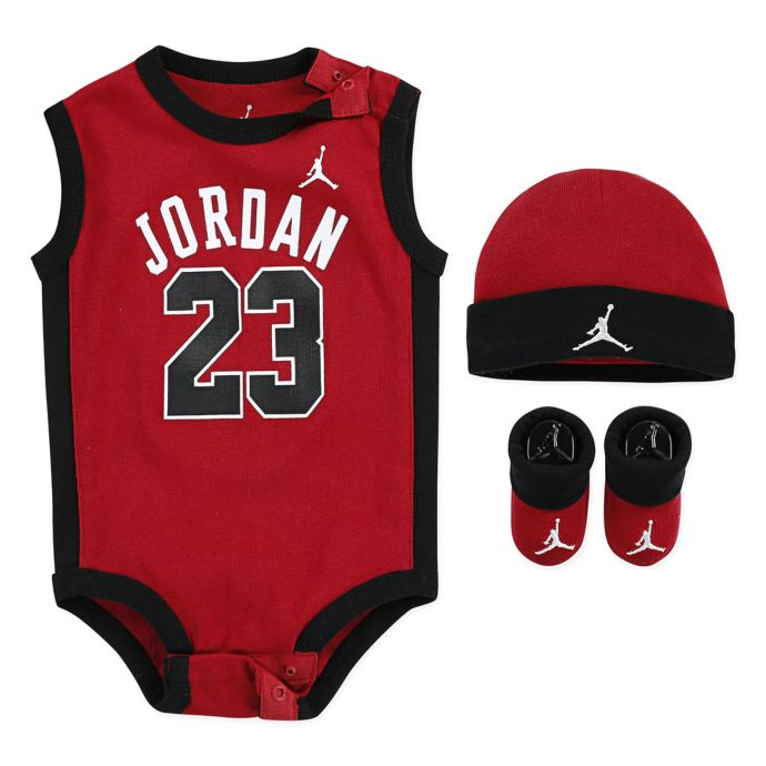 This bodysuit jersey set from NIKE is perfect for mom's MVP. With a soft cotton design, your child will be comfy cozy while they play all day. Fun graphics and the iconic Jordan 23 jersey will have your little one wanting to be just like Mike.