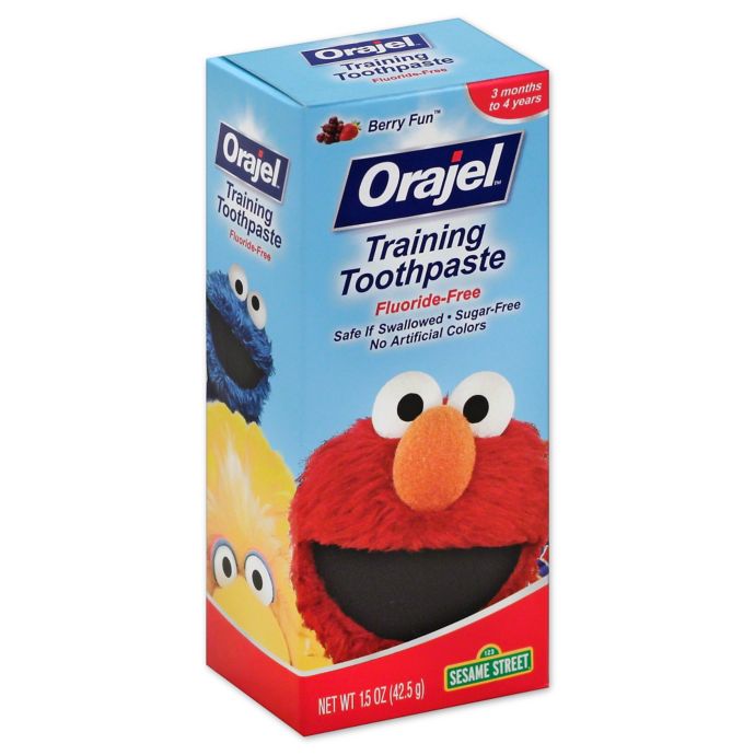 - Orajel 1.5 oz. Toddler Training Toothpaste in Fruit Splash features friendly Sesame Street characters