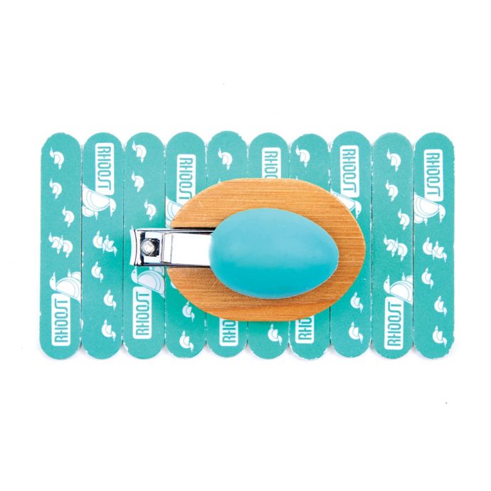 The Rhoost Nail Clipper and Emery Board Set makes it simple and safe to keep your baby's nails groomed. An ergonomic cradle and silicone grip ensure a firm and secure hold so you can clip with ease. Includes 10 durable emery boards for filing tiny nails.