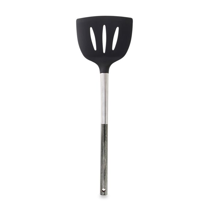 The Schmidt Brothers Ash Tri-Tone Oversized Spatula is made from stainless steel with natural ash pakka wood handles that is both attractive and functional. Perfect for scraping, this piece has a silicone head and features 18/0 polished stainless steel.
