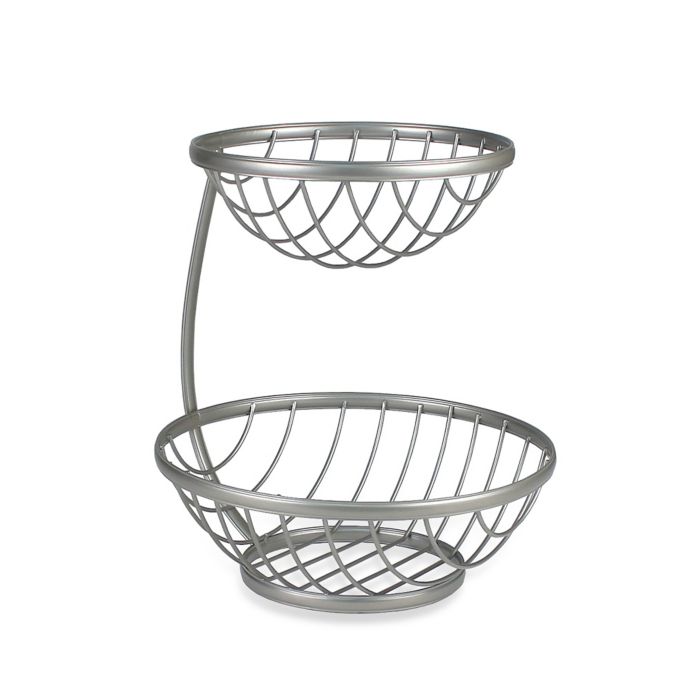 Keep a variety of fruits and vegetables in one place with the delicate modern touch of Spectrum's Ashley 2-Tier Fruit Basket. It contains 2 open bowls that allow produce to evenly ripen while being easily accessible on your table or countertop.