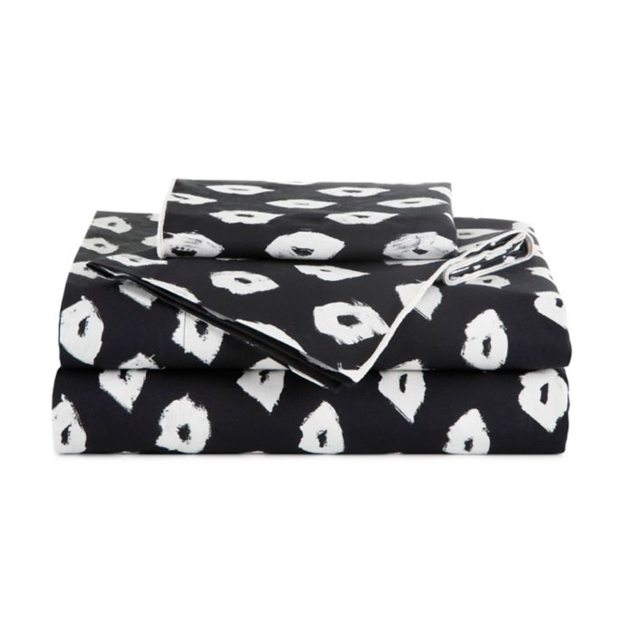The pattern of the Painted Lips Sheet Set from The Novogratz showcases sweet kisses that greet you goodnight. Printed on cotton, the chic black and white sheets are bold, soft, and stylish.