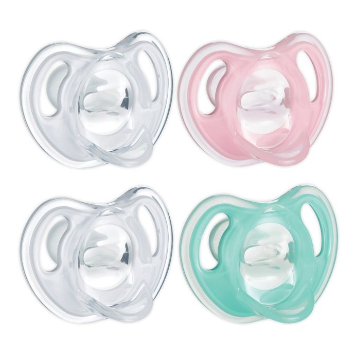 Tommee Tippee Ultra-Light 0-6M 4-Pack Silicone Pacifiers in Pink/Aqua