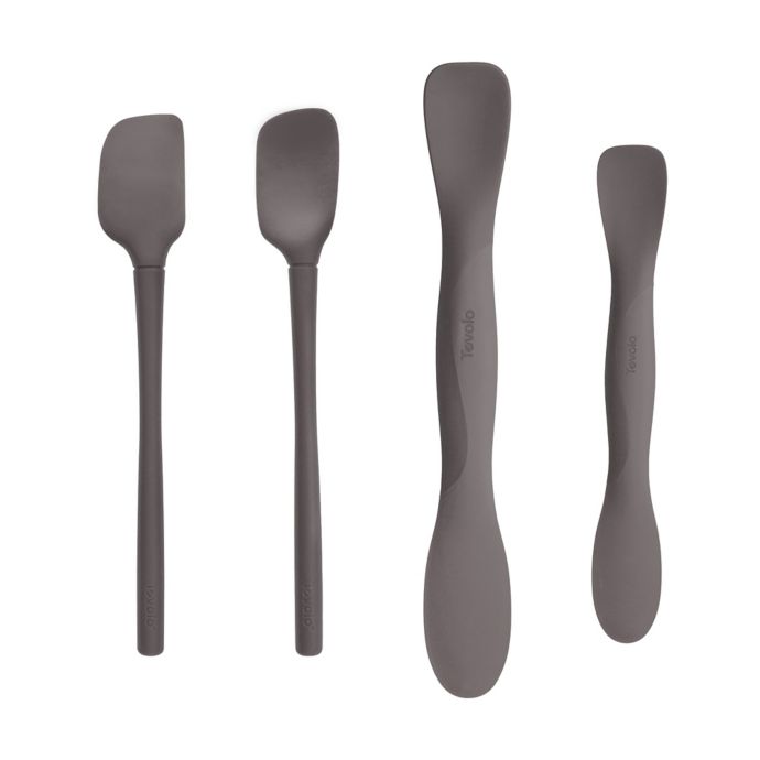 Perfect for prepping or serving smaller amounts of food, the Tovolo Silicone Mini Spatula Set includes a spatula, spoonula and 2 sizes of spread/scoop tools. Each has a non-slip grip and is heat-resistant and dishwasher-safe.