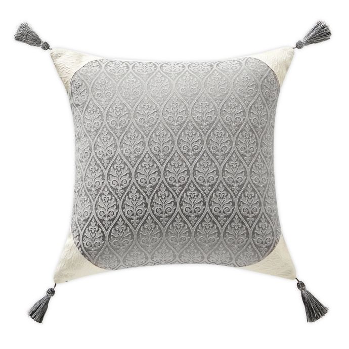 Add enchanting beauty to your bedroom oasis with the Vernon Tassel Square Throw Pillow from Waterford. The pillow is updated with applique at each corner and a diamond jewel tassel at each corner for added texture and dimension.